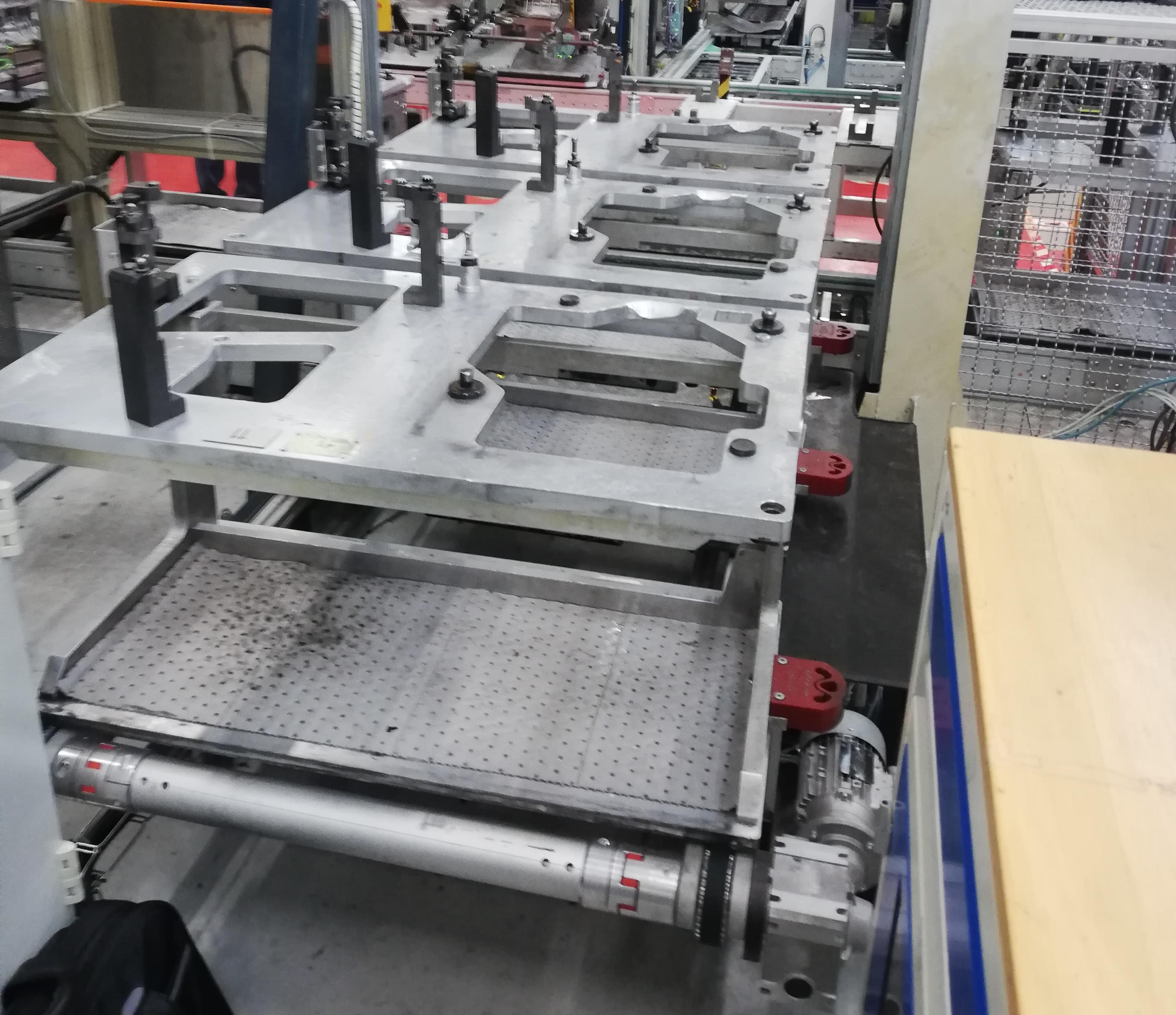 Extension of the existing conveyor with a so-called dead arm, where pallets can be temporarily placed in the event of a full line to compensate for any downtime caused by breakdowns.