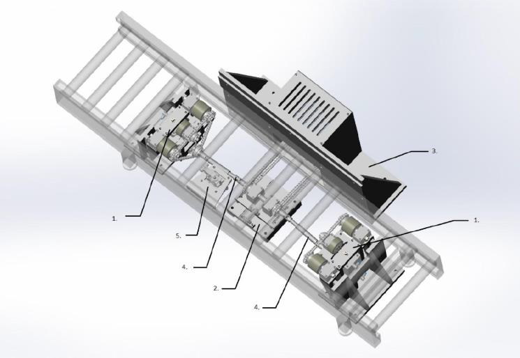 On the main conveyor, there is a designated point from which the pallet can be moved to the dead arm - the operator decides on the move according to the current state and need on the line. When a pallet is moved, it is picked up and moved to the secondary conveyor. 3 pallets can be placed on the conveyor at the same time. If the position in front of the conveyor is empty, the operator can unload the pallet from the tray.